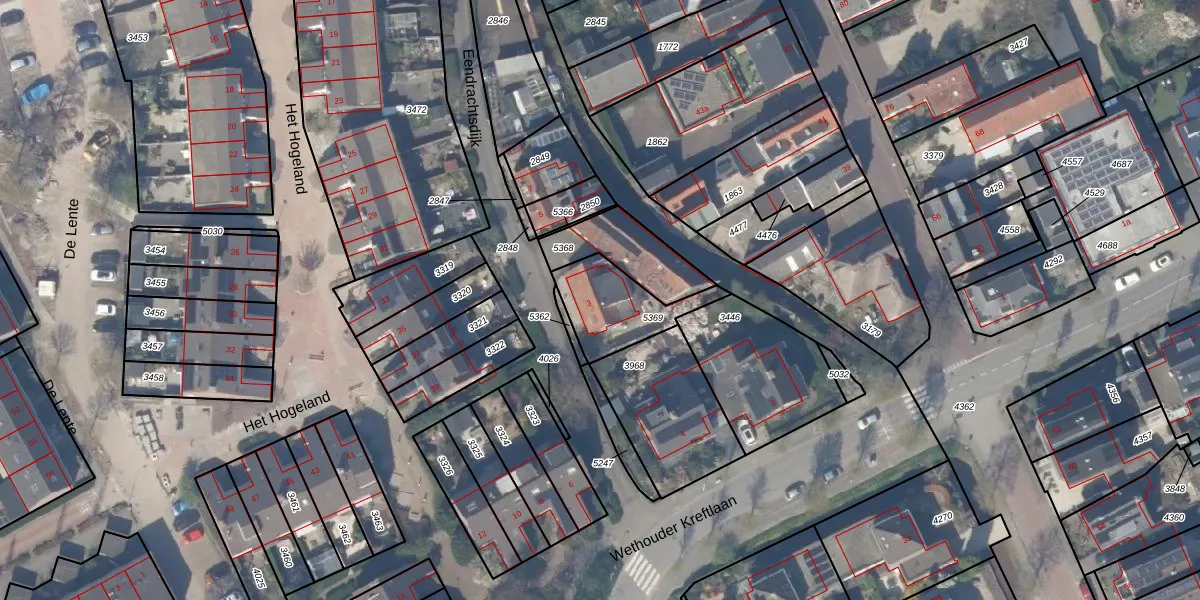 Gebruik de zoekbalk of klik op een perceel voor informatie over de adressen binnen dit perceel.