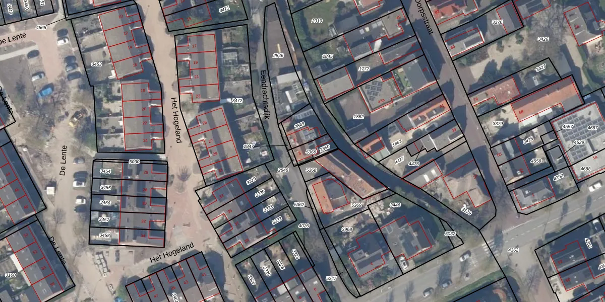 Het perceel waarop Eendrachtsdijk 5 staat heeft een oppervlakte van 80 m². Dit is een klein perceel. De perceeloppervlakte wordt geregistreerd door het Kadaster. Gedetailleerde informatie over de maten van dit perceel kunt u vinden in het rapport Kadastrale kaart met maatvoering van Eendrachtsdijk 5.