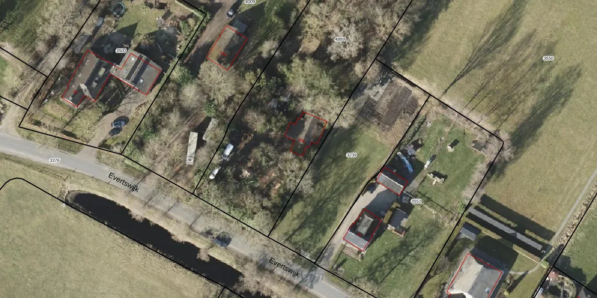 Evertswijk 58-b is gelegen op kadastraal perceel LEE01G4889. Deze kadastrale aanduiding is uniek en wordt gebruikt door het Kadaster om eigendomsrechten en andere zakelijke rechten vast te leggen. Het perceel maakt onderdeel uit van de kadastrale gemeente Leek.