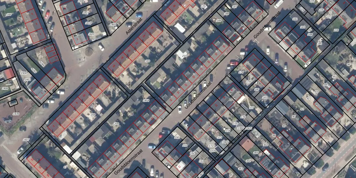 Het perceel waarop Goudsbloemstraat 21 staat heeft een oppervlakte van 1100 m². Dit is een zeer groot perceel. De perceeloppervlakte wordt geregistreerd door het Kadaster. Gedetailleerde informatie over de maten van dit perceel kunt u vinden in het rapport Kadastrale kaart met maatvoering van Goudsbloemstraat 21.