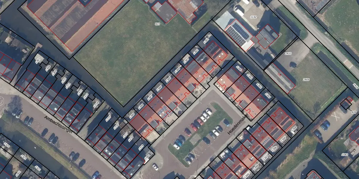 Het perceel waarop Hoedenmaker 9 staat heeft een oppervlakte van 158 m². Dit is een middelgroot perceel. De perceeloppervlakte wordt geregistreerd door het Kadaster. Gedetailleerde informatie over de maten van dit perceel kunt u vinden in het rapport Kadastrale kaart met maatvoering van Hoedenmaker 9.