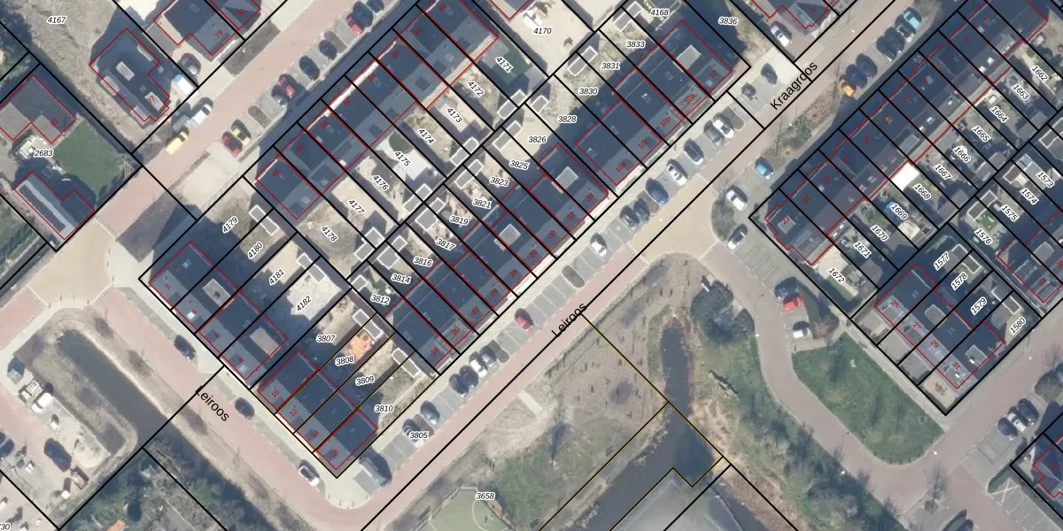 Het perceel waarop Leiroos 28 staat heeft een oppervlakte van 129 m². Dit is een middelgroot perceel. De perceeloppervlakte wordt geregistreerd door het Kadaster. Gedetailleerde informatie over de maten van dit perceel kunt u vinden in het rapport Kadastrale kaart met maatvoering van Leiroos 28.
