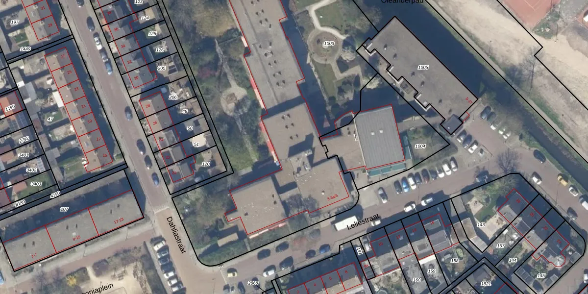 Het perceel waarop Leliestraat 3-a-302 staat heeft een oppervlakte van 6060 m². Dit is een zeer groot perceel. De perceeloppervlakte wordt geregistreerd door het Kadaster. Gedetailleerde informatie over de maten van dit perceel kunt u vinden in het rapport Kadastrale kaart met maatvoering van Leliestraat 3-a-302.