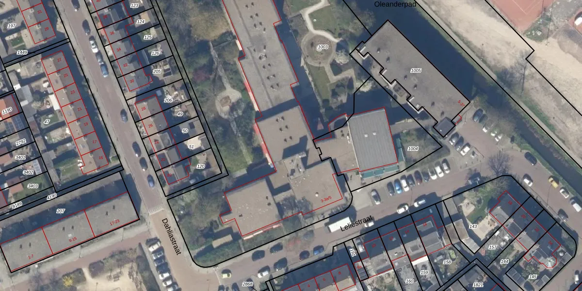 Het perceel waarop Leliestraat 3-a-402 staat heeft een oppervlakte van 6060 m². Dit is een zeer groot perceel. De perceeloppervlakte wordt geregistreerd door het Kadaster. Gedetailleerde informatie over de maten van dit perceel kunt u vinden in het rapport Kadastrale kaart met maatvoering van Leliestraat 3-a-402.