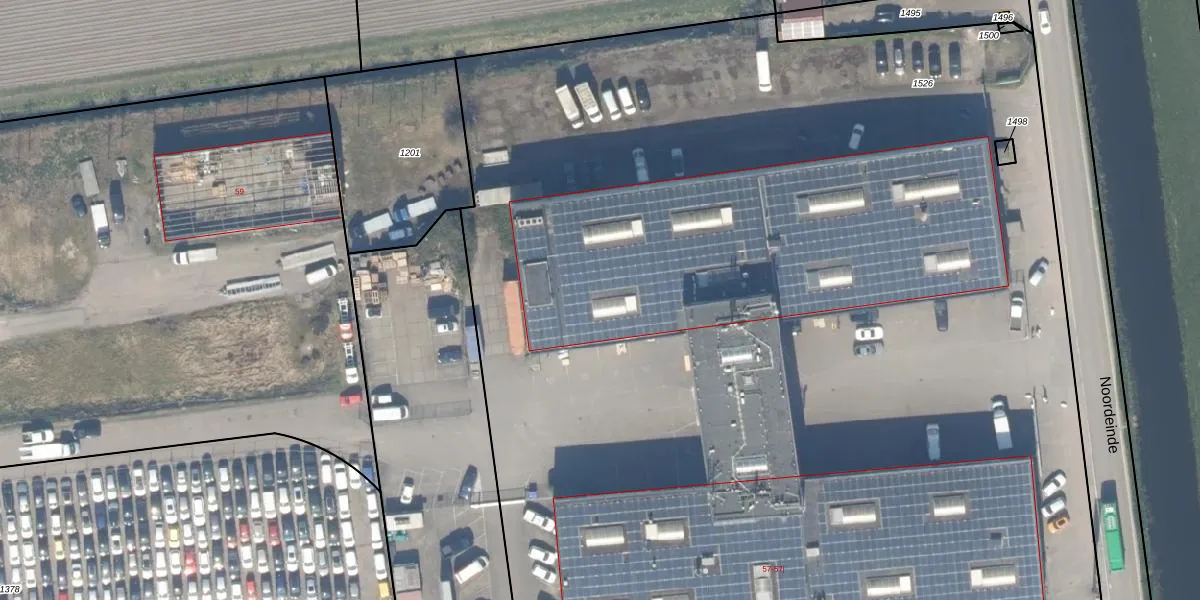 Het perceel waarop Noordeinde 57-c staat heeft een oppervlakte van 1,3 ha. Dit is een zeer groot perceel. De perceeloppervlakte wordt geregistreerd door het Kadaster. Gedetailleerde informatie over de maten van dit perceel kunt u vinden in het rapport Kadastrale kaart met maatvoering van Noordeinde 57-c.