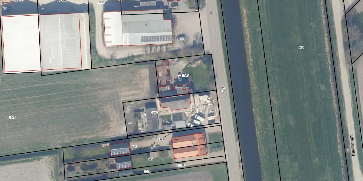 Het perceel waarop Noordeinde 69 staat heeft een oppervlakte van 665 m². Dit is een groot perceel. De perceeloppervlakte wordt geregistreerd door het Kadaster. Gedetailleerde informatie over de maten van dit perceel kunt u vinden in het rapport Kadastrale kaart met maatvoering van Noordeinde 69.