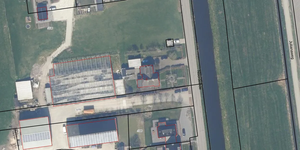 Het perceel waarop Noordeinde 71-b staat heeft een oppervlakte van 1,4 ha. Dit is een zeer groot perceel. De perceeloppervlakte wordt geregistreerd door het Kadaster. Gedetailleerde informatie over de maten van dit perceel kunt u vinden in het rapport Kadastrale kaart met maatvoering van Noordeinde 71-b.