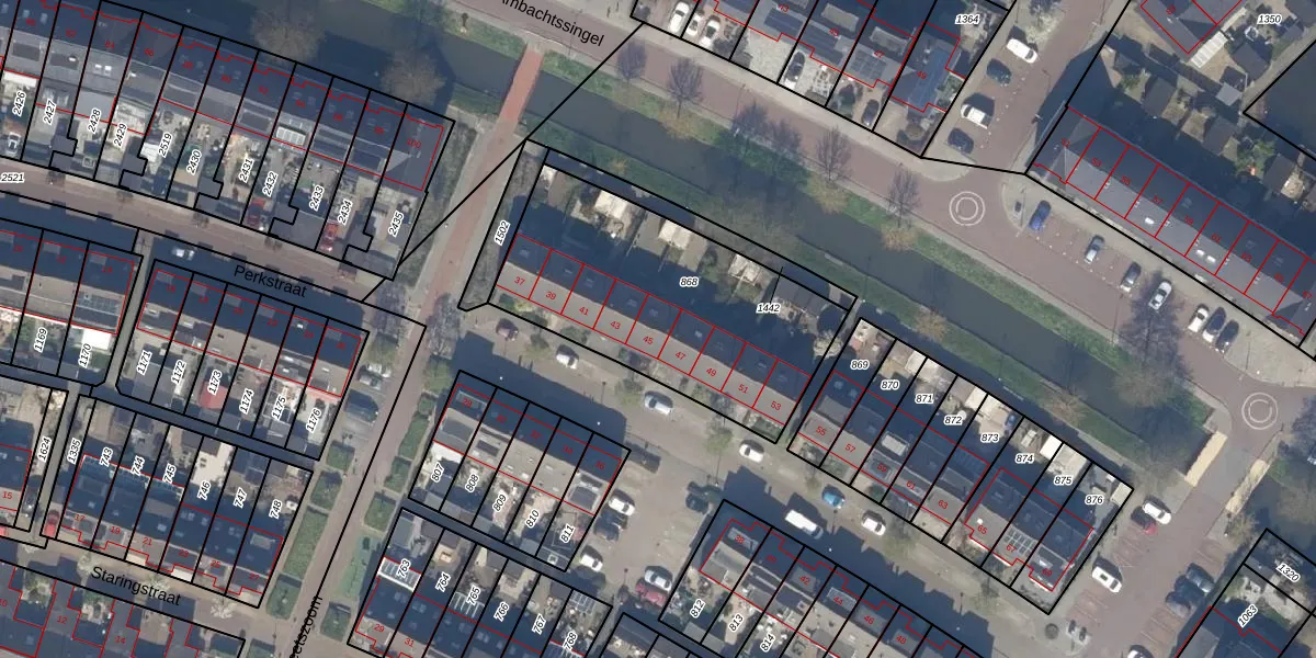 Perkstraat 45 is gelegen op kadastraal perceel ZVH02E868. Deze kadastrale aanduiding is uniek en wordt gebruikt door het Kadaster om eigendomsrechten en andere zakelijke rechten vast te leggen. Het perceel maakt onderdeel uit van de kadastrale gemeente Zevenhuizen.
