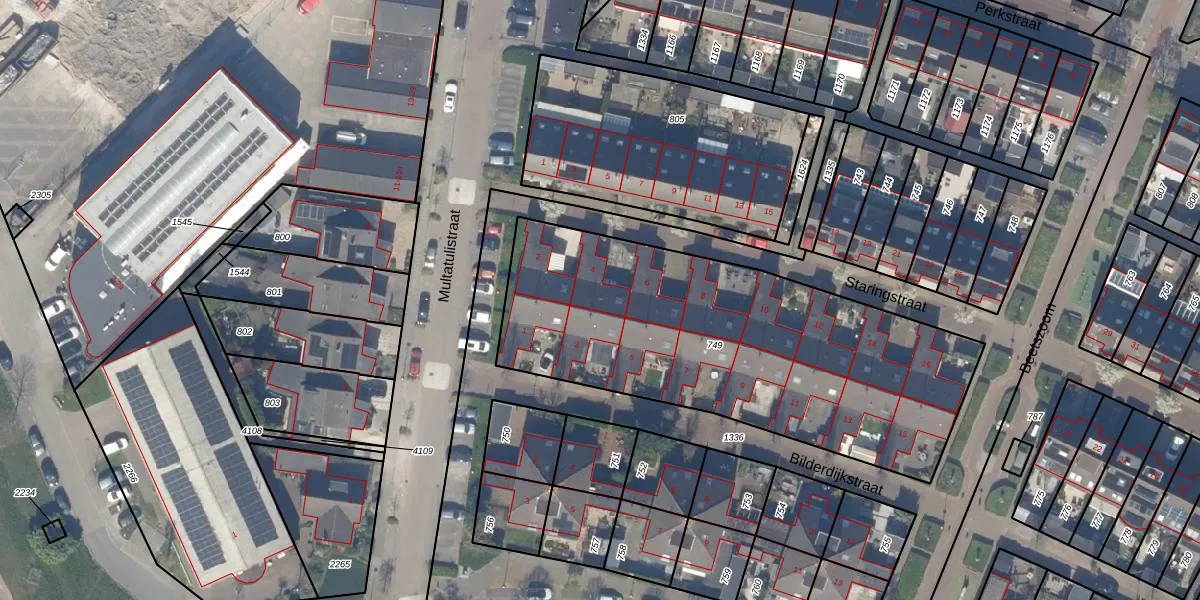 Het perceel waarop Staringstraat 4 staat heeft een oppervlakte van 1950 m². Dit is een zeer groot perceel. De perceeloppervlakte wordt geregistreerd door het Kadaster. Gedetailleerde informatie over de maten van dit perceel kunt u vinden in het rapport Kadastrale kaart met maatvoering van Staringstraat 4.
