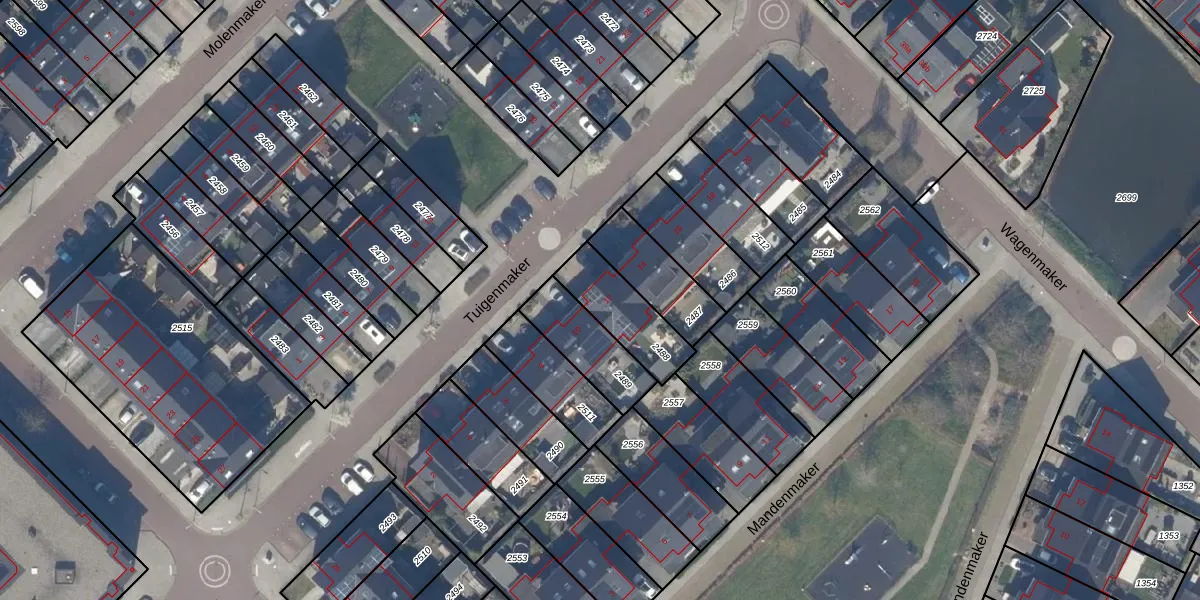 Gebruik de zoekbalk of klik op een perceel voor informatie over de adressen binnen dit perceel.