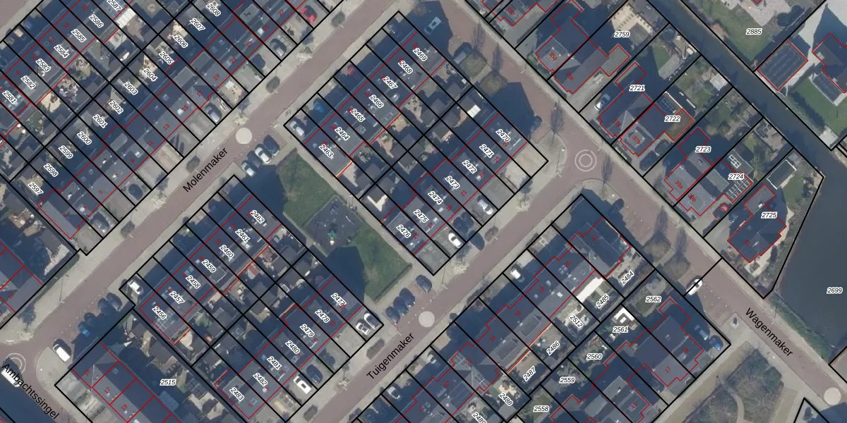 Gebruik de zoekbalk of klik op een perceel voor informatie over de adressen binnen dit perceel.