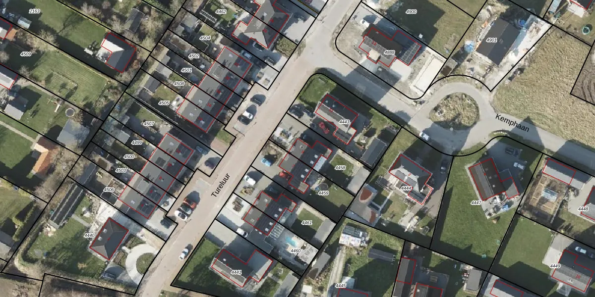 Het perceel waarop Tureluur 9 staat heeft een oppervlakte van 376 m². Dit is een groot perceel. De perceeloppervlakte wordt geregistreerd door het Kadaster. Gedetailleerde informatie over de maten van dit perceel kunt u vinden in het rapport Kadastrale kaart met maatvoering van Tureluur 9.