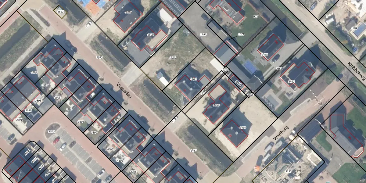 Het perceel waarop Versailles 26 staat heeft een oppervlakte van 508 m². Dit is een groot perceel. De perceeloppervlakte wordt geregistreerd door het Kadaster. Gedetailleerde informatie over de maten van dit perceel kunt u vinden in het rapport Kadastrale kaart met maatvoering van Versailles 26.