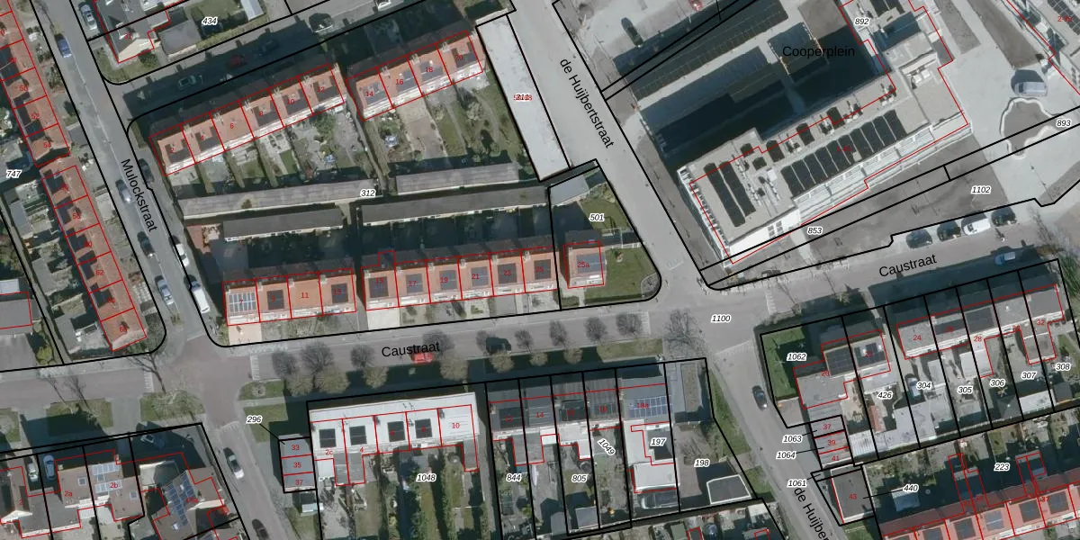 Het perceel waarop Caustraat 25 staat heeft een oppervlakte van 3690 m². Dit is een zeer groot perceel. De perceeloppervlakte wordt geregistreerd door het Kadaster. Gedetailleerde informatie over de maten van dit perceel kunt u vinden in het rapport Kadastrale kaart met maatvoering van Caustraat 25.