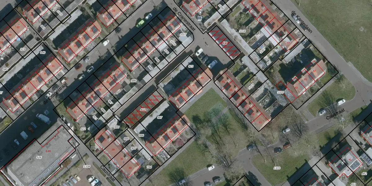 Het perceel waarop Caustraat 45 staat heeft een oppervlakte van 804 m². Dit is een groot perceel. De perceeloppervlakte wordt geregistreerd door het Kadaster. Gedetailleerde informatie over de maten van dit perceel kunt u vinden in het rapport Kadastrale kaart met maatvoering van Caustraat 45.