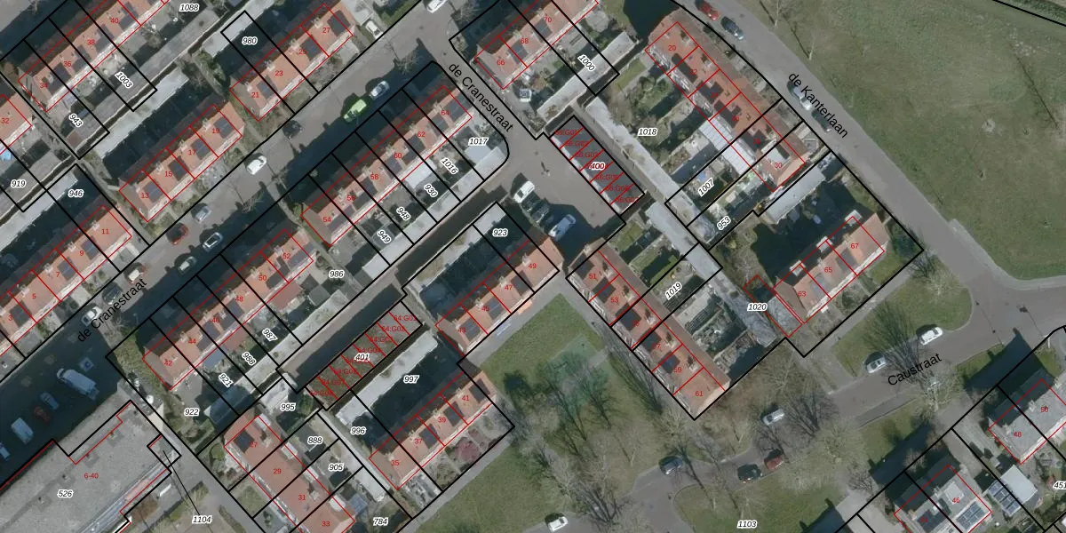 Het perceel waarop Caustraat 49 staat heeft een oppervlakte van 106 m². Dit is een middelgroot perceel. De perceeloppervlakte wordt geregistreerd door het Kadaster. Gedetailleerde informatie over de maten van dit perceel kunt u vinden in het rapport Kadastrale kaart met maatvoering van Caustraat 49.