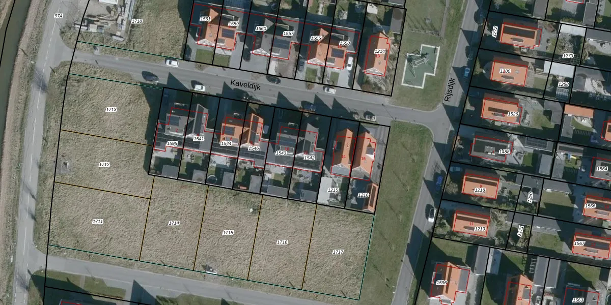 Het perceel waarop Kaveldijk 12 staat heeft een oppervlakte van 279 m². Dit is een middelgroot perceel. De perceeloppervlakte wordt geregistreerd door het Kadaster. Gedetailleerde informatie over de maten van dit perceel kunt u vinden in het rapport Kadastrale kaart met maatvoering van Kaveldijk 12.