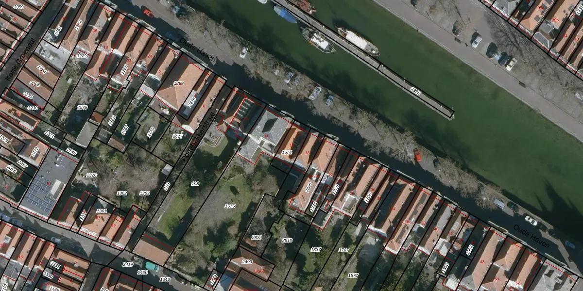 Het perceel waarop Oude Haven 16 staat heeft een oppervlakte van 116 m². Dit is een middelgroot perceel. De perceeloppervlakte wordt geregistreerd door het Kadaster. Gedetailleerde informatie over de maten van dit perceel kunt u vinden in het rapport Kadastrale kaart met maatvoering van Oude Haven 16.