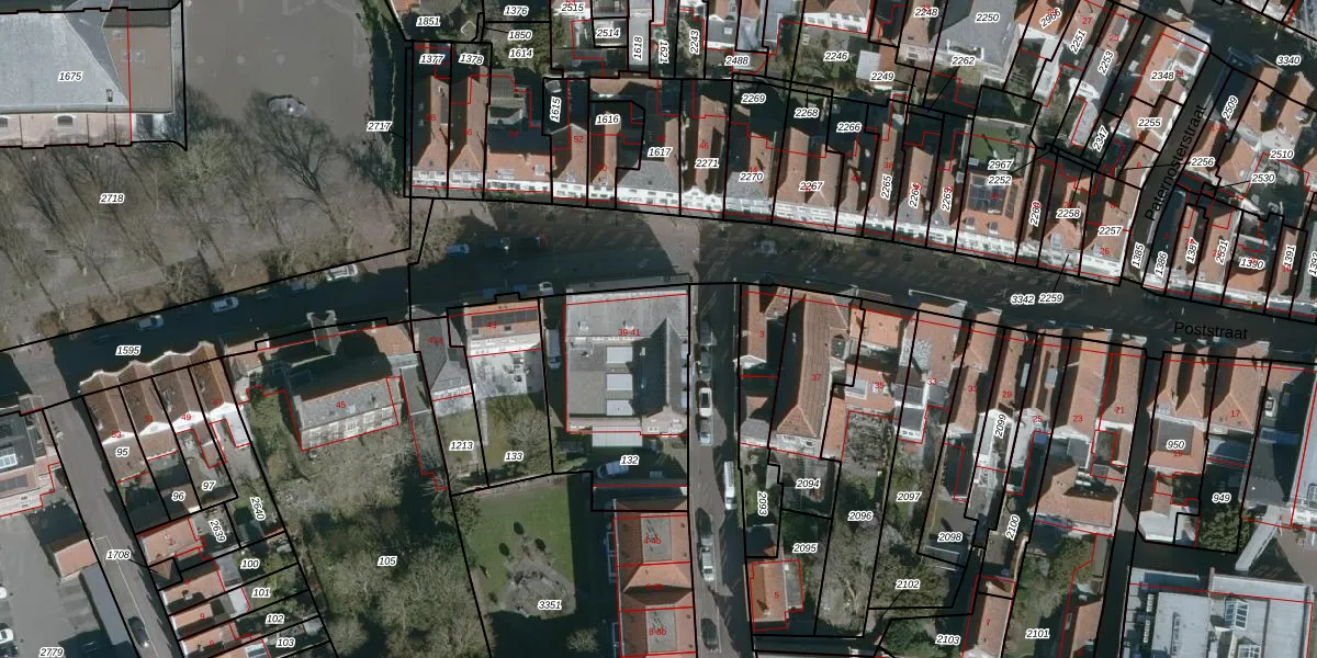 Het perceel waarop Poststraat 39 staat heeft een oppervlakte van 685 m². Dit is een groot perceel. De perceeloppervlakte wordt geregistreerd door het Kadaster. Gedetailleerde informatie over de maten van dit perceel kunt u vinden in het rapport Kadastrale kaart met maatvoering van Poststraat 39.