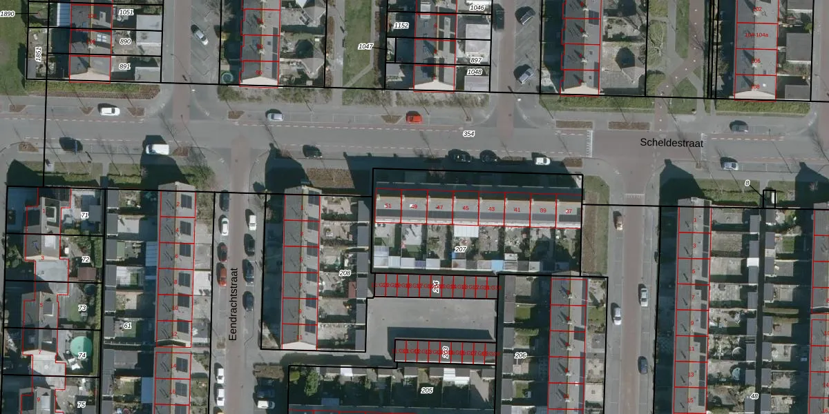 Het perceel waarop Scheldestraat 49 staat heeft een oppervlakte van 1248 m². Dit is een zeer groot perceel. De perceeloppervlakte wordt geregistreerd door het Kadaster. Gedetailleerde informatie over de maten van dit perceel kunt u vinden in het rapport Kadastrale kaart met maatvoering van Scheldestraat 49.