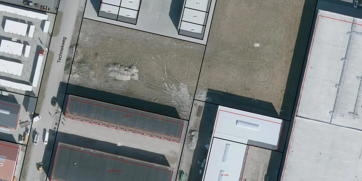 Het perceel waarop Techniekweg 7-0014 staat heeft een oppervlakte van 2988 m². Dit is een zeer groot perceel. De perceeloppervlakte wordt geregistreerd door het Kadaster. Gedetailleerde informatie over de maten van dit perceel kunt u vinden in het rapport Kadastrale kaart met maatvoering van Techniekweg 7-0014.