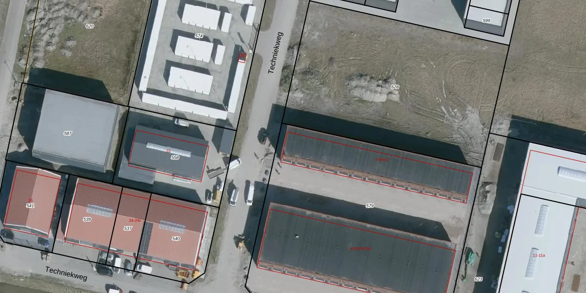 Het perceel waarop Techniekweg 9 staat heeft een oppervlakte van 4228 m². Dit is een zeer groot perceel. De perceeloppervlakte wordt geregistreerd door het Kadaster. Gedetailleerde informatie over de maten van dit perceel kunt u vinden in het rapport Kadastrale kaart met maatvoering van Techniekweg 9.