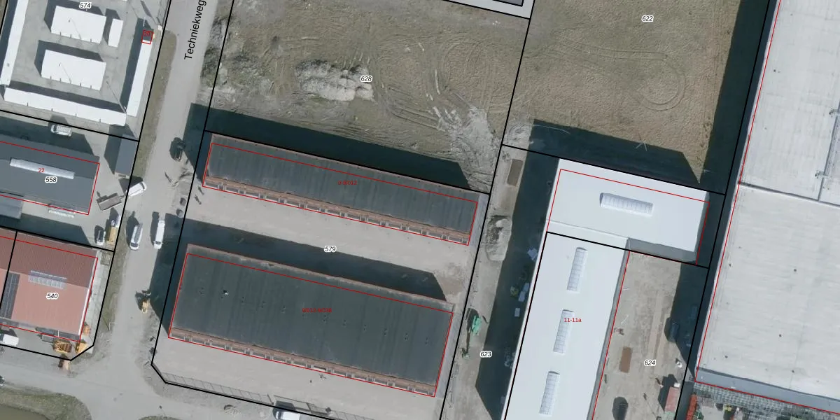 Het perceel waarop Techniekweg 9-010 staat heeft een oppervlakte van 4228 m². Dit is een zeer groot perceel. De perceeloppervlakte wordt geregistreerd door het Kadaster. Gedetailleerde informatie over de maten van dit perceel kunt u vinden in het rapport Kadastrale kaart met maatvoering van Techniekweg 9-010.