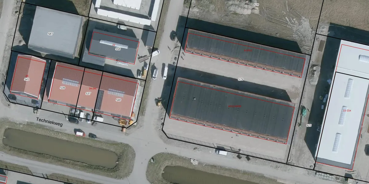 Het perceel waarop Techniekweg 9-013 staat heeft een oppervlakte van 4228 m². Dit is een zeer groot perceel. De perceeloppervlakte wordt geregistreerd door het Kadaster. Gedetailleerde informatie over de maten van dit perceel kunt u vinden in het rapport Kadastrale kaart met maatvoering van Techniekweg 9-013.