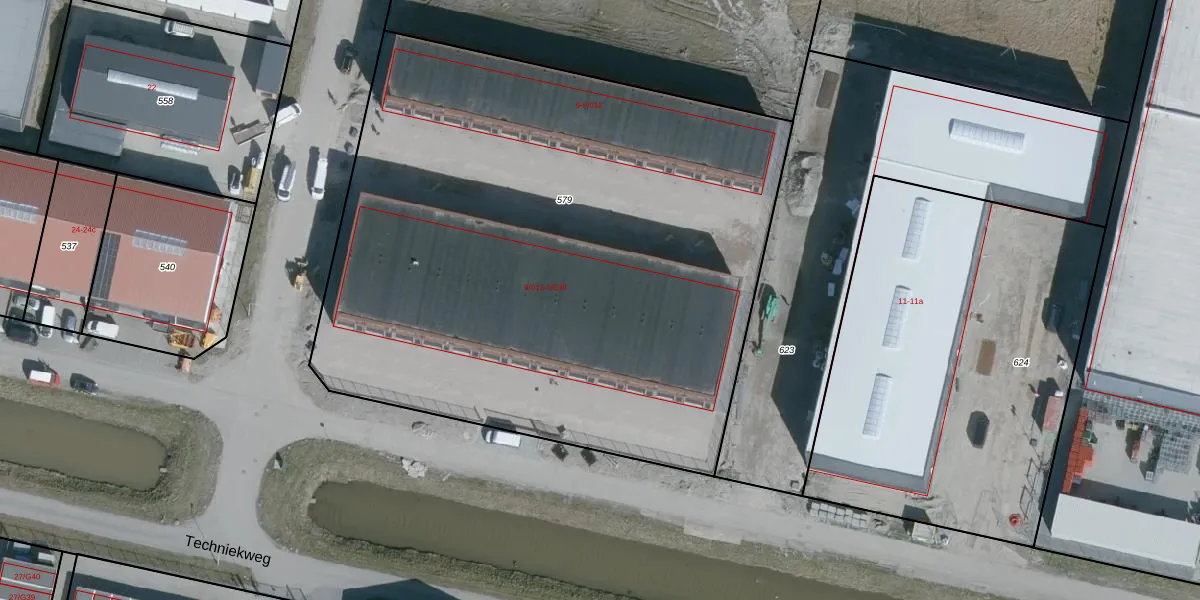 Het perceel waarop Techniekweg 9-020 staat heeft een oppervlakte van 4228 m². Dit is een zeer groot perceel. De perceeloppervlakte wordt geregistreerd door het Kadaster. Gedetailleerde informatie over de maten van dit perceel kunt u vinden in het rapport Kadastrale kaart met maatvoering van Techniekweg 9-020.