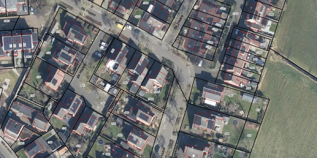 de Haare 32 is gelegen op kadastraal perceel LTV00L1495. Deze kadastrale aanduiding is uniek en wordt gebruikt door het Kadaster om eigendomsrechten en andere zakelijke rechten vast te leggen. Het perceel maakt onderdeel uit van de kadastrale gemeente Lichtenvoorde.