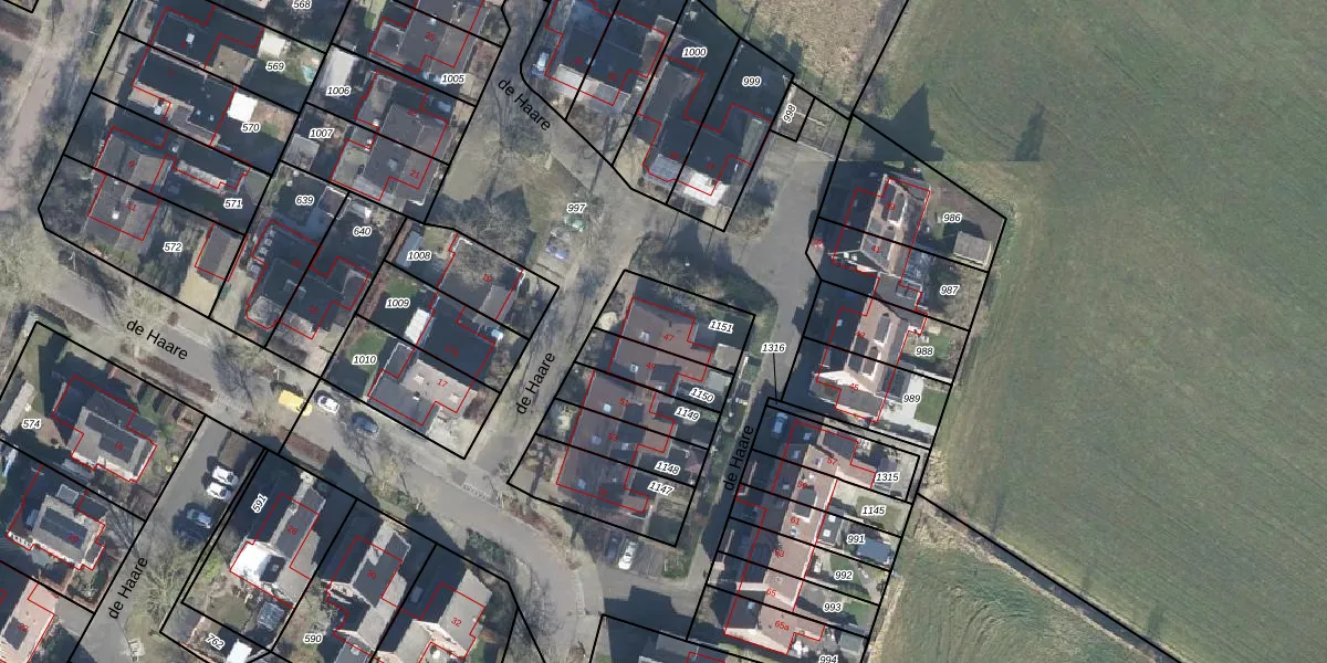 Het perceel waarop de Haare 47 staat heeft een oppervlakte van 208 m². Dit is een middelgroot perceel. De perceeloppervlakte wordt geregistreerd door het Kadaster. Gedetailleerde informatie over de maten van dit perceel kunt u vinden in het rapport Kadastrale kaart met maatvoering van de Haare 47.