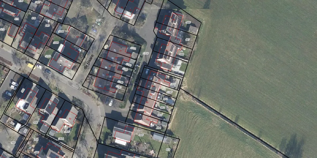 Het perceel waarop de Haare 57 staat heeft een oppervlakte van 174 m². Dit is een middelgroot perceel. De perceeloppervlakte wordt geregistreerd door het Kadaster. Gedetailleerde informatie over de maten van dit perceel kunt u vinden in het rapport Kadastrale kaart met maatvoering van de Haare 57.