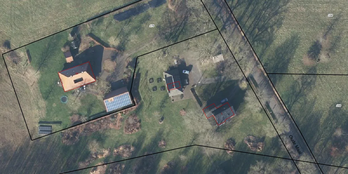 Het perceel waarop Oude Maat 2-b staat heeft een oppervlakte van 3,6 ha. Dit is een zeer groot perceel. De perceeloppervlakte wordt geregistreerd door het Kadaster. Gedetailleerde informatie over de maten van dit perceel kunt u vinden in het rapport Kadastrale kaart met maatvoering van Oude Maat 2-b.