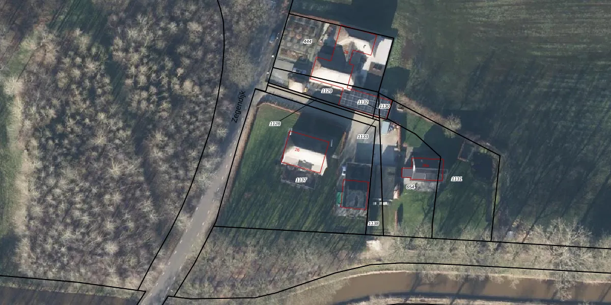 Zegendijk 26 is gelegen op kadastraal perceel LTV00K1137. Deze kadastrale aanduiding is uniek en wordt gebruikt door het Kadaster om eigendomsrechten en andere zakelijke rechten vast te leggen. Het perceel maakt onderdeel uit van de kadastrale gemeente Lichtenvoorde.