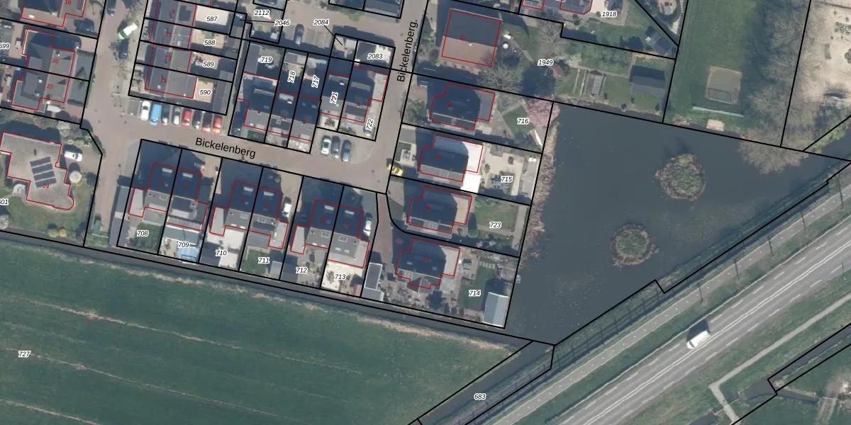 Het perceel waarop Bickelenberg 16 staat heeft een oppervlakte van 408 m². Dit is een groot perceel. De perceeloppervlakte wordt geregistreerd door het Kadaster. Gedetailleerde informatie over de maten van dit perceel kunt u vinden in het rapport Kadastrale kaart met maatvoering van Bickelenberg 16.