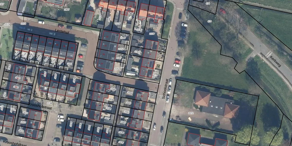 Het perceel waarop Schoolstraat 8 staat heeft een oppervlakte van 1168 m². Dit is een zeer groot perceel. De perceeloppervlakte wordt geregistreerd door het Kadaster. Gedetailleerde informatie over de maten van dit perceel kunt u vinden in het rapport Kadastrale kaart met maatvoering van Schoolstraat 8.
