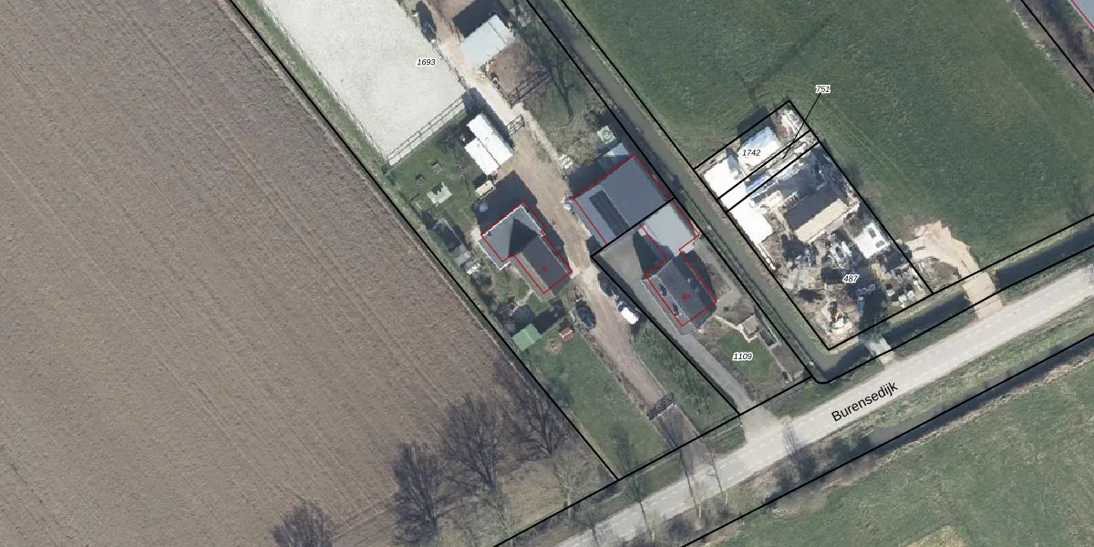 Burensedijk 9 is gelegen op kadastraal perceel ZLN01F1693. Deze kadastrale aanduiding is uniek en wordt gebruikt door het Kadaster om eigendomsrechten en andere zakelijke rechten vast te leggen. Het perceel maakt onderdeel uit van de kadastrale gemeente Zoelen.