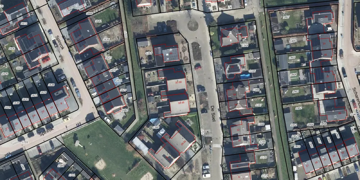 Het perceel waarop De Soel 37 staat heeft een oppervlakte van 1711 m². Dit is een zeer groot perceel. De perceeloppervlakte wordt geregistreerd door het Kadaster. Gedetailleerde informatie over de maten van dit perceel kunt u vinden in het rapport Kadastrale kaart met maatvoering van De Soel 37.