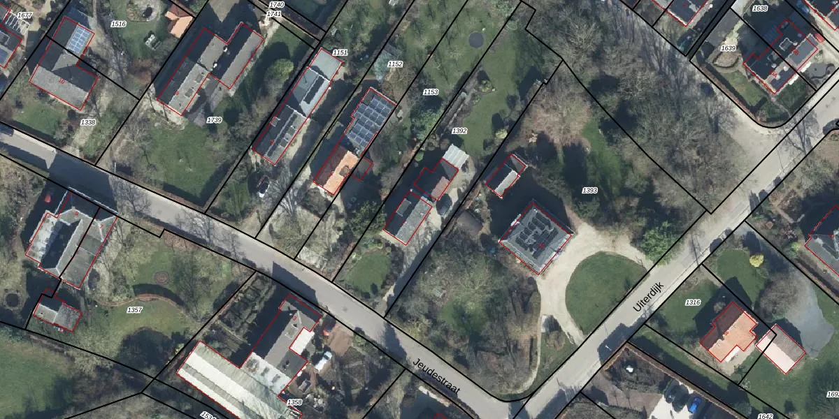 Het perceel waarop Jeudestraat 2 staat heeft een oppervlakte van 1175 m². Dit is een zeer groot perceel. De perceeloppervlakte wordt geregistreerd door het Kadaster. Gedetailleerde informatie over de maten van dit perceel kunt u vinden in het rapport Kadastrale kaart met maatvoering van Jeudestraat 2.