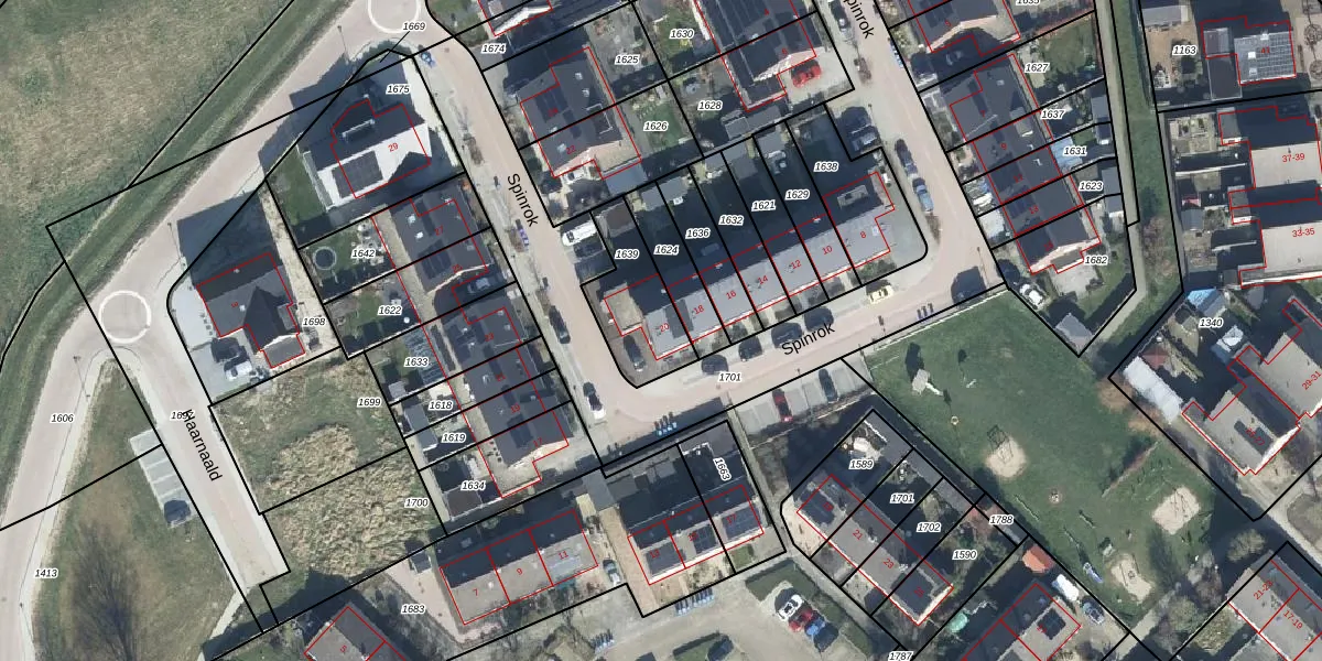 Het perceel waarop Spinrok 20 staat heeft een oppervlakte van 256 m². Dit is een middelgroot perceel. De perceeloppervlakte wordt geregistreerd door het Kadaster. Gedetailleerde informatie over de maten van dit perceel kunt u vinden in het rapport Kadastrale kaart met maatvoering van Spinrok 20.