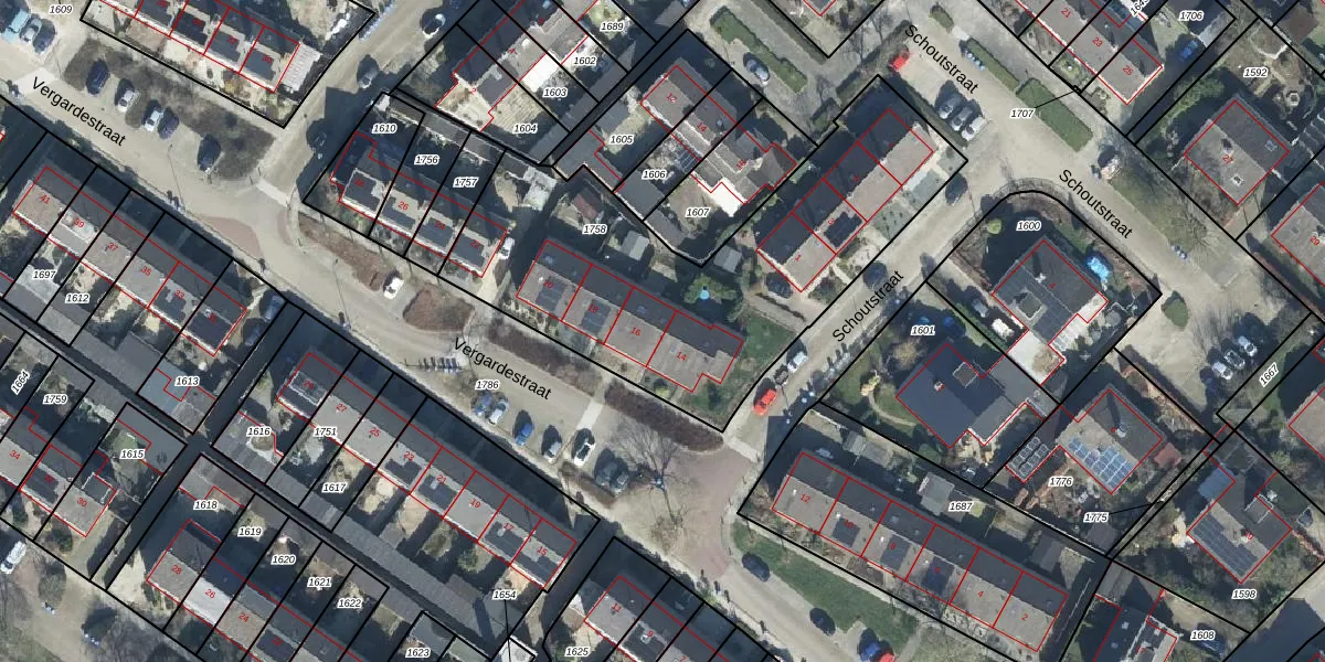 Vergardestraat 16 is gelegen op kadastraal perceel ZLN01D1758. Deze kadastrale aanduiding is uniek en wordt gebruikt door het Kadaster om eigendomsrechten en andere zakelijke rechten vast te leggen. Het perceel maakt onderdeel uit van de kadastrale gemeente Zoelen.