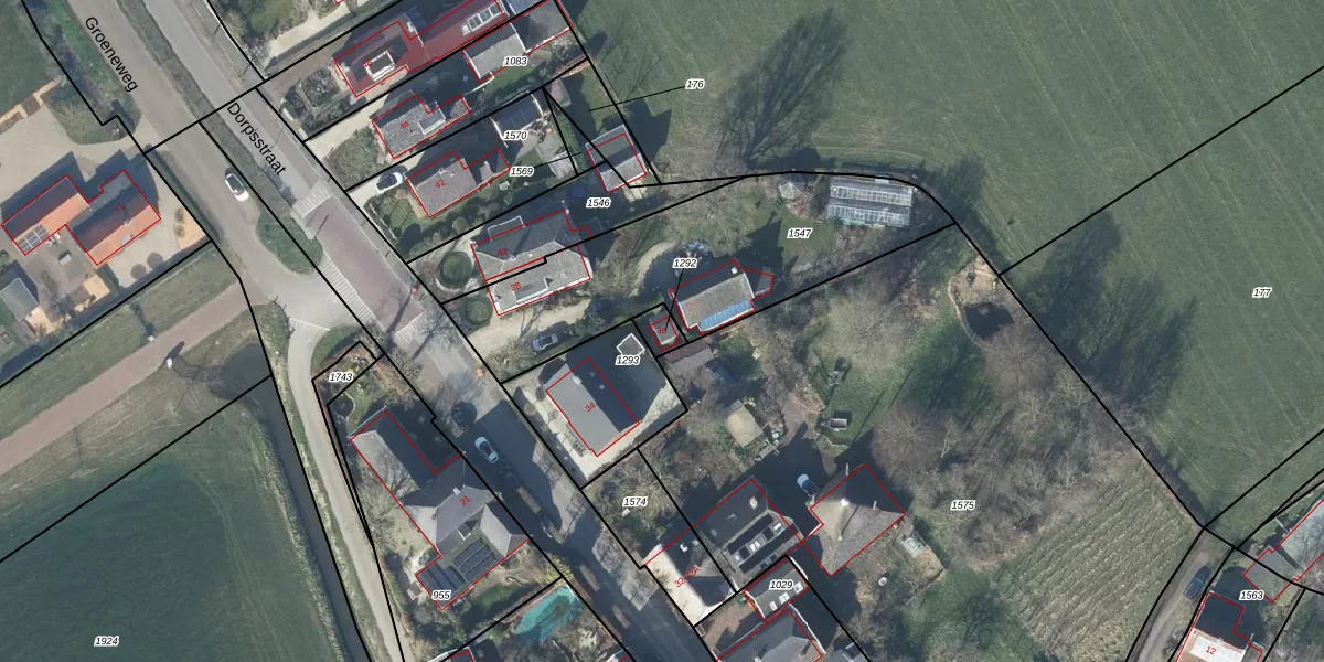 Het perceel waarop Dorpsstraat 36 staat heeft een oppervlakte van 37 m². Dit is een klein perceel. De perceeloppervlakte wordt geregistreerd door het Kadaster. Gedetailleerde informatie over de maten van dit perceel kunt u vinden in het rapport Kadastrale kaart met maatvoering van Dorpsstraat 36.