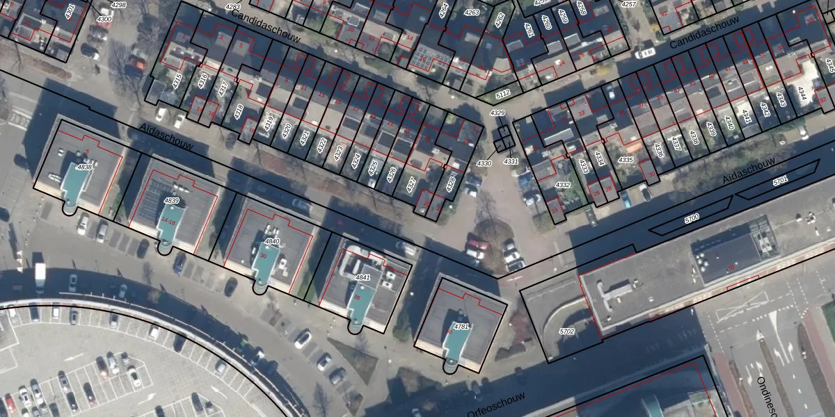 Aïdaschouw 20 is gelegen op kadastraal perceel ZTM00C4327. Deze kadastrale aanduiding is uniek en wordt gebruikt door het Kadaster om eigendomsrechten en andere zakelijke rechten vast te leggen. Het perceel maakt onderdeel uit van de kadastrale gemeente Zoetermeer.