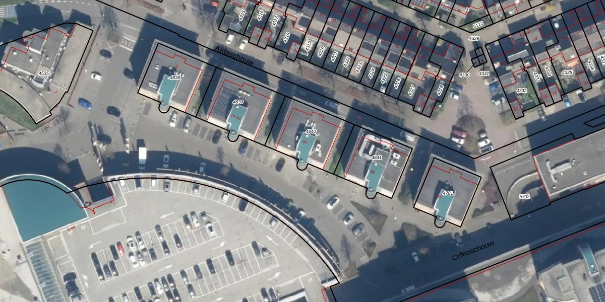 Het perceel waarop Aïdaschouw 9 staat heeft een oppervlakte van 449 m². Dit is een groot perceel. De perceeloppervlakte wordt geregistreerd door het Kadaster. Gedetailleerde informatie over de maten van dit perceel kunt u vinden in het rapport Kadastrale kaart met maatvoering van Aïdaschouw 9.