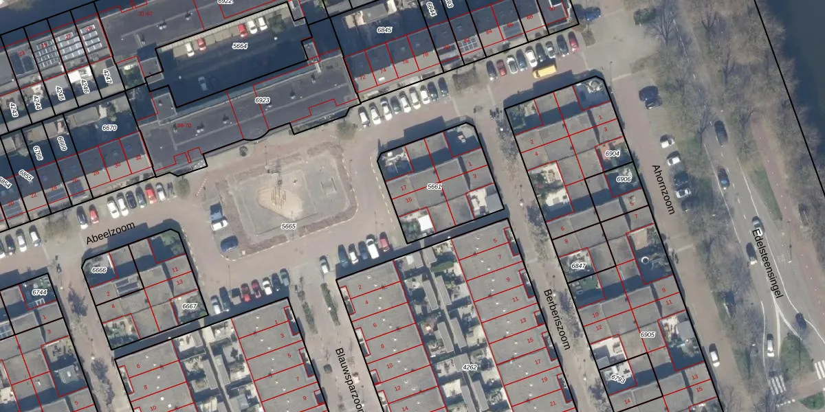 Het perceel waarop Abeelzoom 15 staat heeft een oppervlakte van 568 m². Dit is een groot perceel. De perceeloppervlakte wordt geregistreerd door het Kadaster. Gedetailleerde informatie over de maten van dit perceel kunt u vinden in het rapport Kadastrale kaart met maatvoering van Abeelzoom 15.