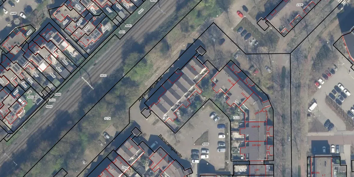 Het perceel waarop Abrikozengaarde 33 staat heeft een oppervlakte van 2317 m². Dit is een zeer groot perceel. De perceeloppervlakte wordt geregistreerd door het Kadaster. Gedetailleerde informatie over de maten van dit perceel kunt u vinden in het rapport Kadastrale kaart met maatvoering van Abrikozengaarde 33.