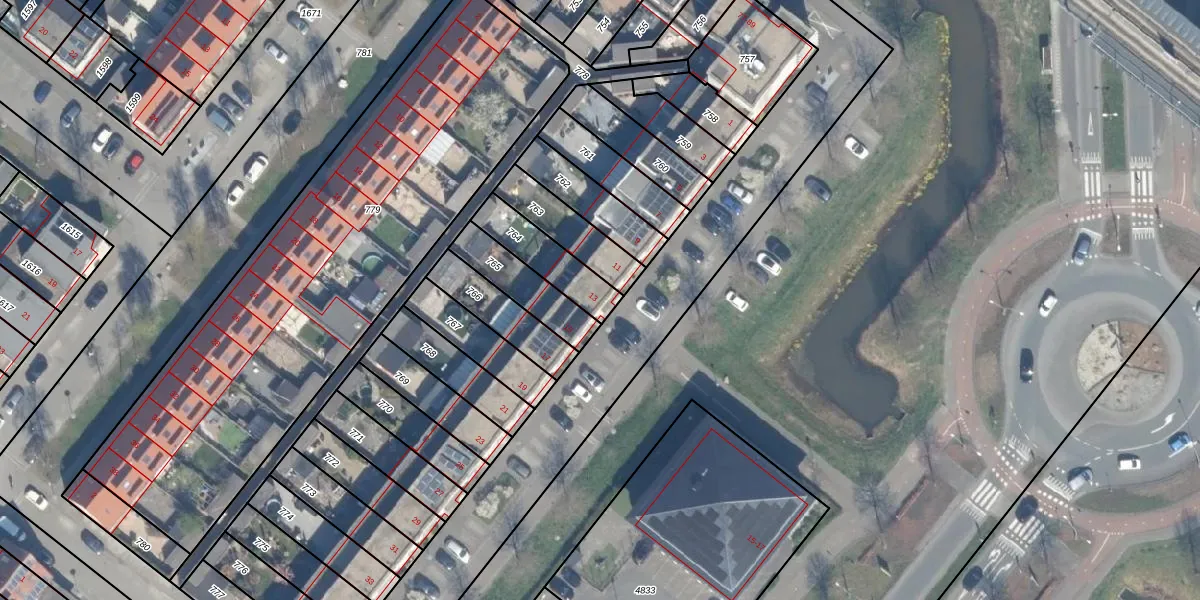 Gebruik de zoekbalk of klik op een perceel voor informatie over de adressen binnen dit perceel.