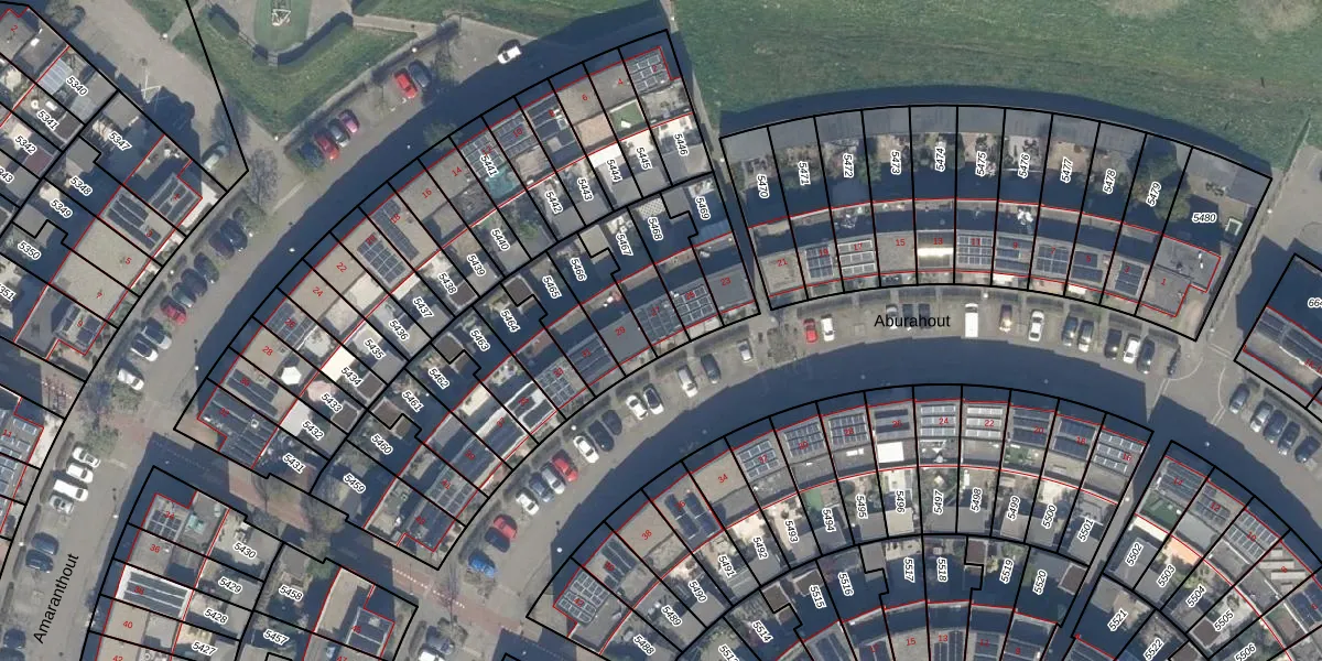 Het perceel waarop Aburahout 27 staat heeft een oppervlakte van 143 m². Dit is een middelgroot perceel. De perceeloppervlakte wordt geregistreerd door het Kadaster. Gedetailleerde informatie over de maten van dit perceel kunt u vinden in het rapport Kadastrale kaart met maatvoering van Aburahout 27.