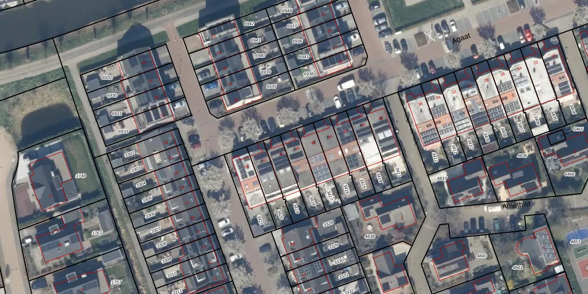 Het perceel waarop Agaat 48 staat heeft een oppervlakte van 180 m². Dit is een middelgroot perceel. De perceeloppervlakte wordt geregistreerd door het Kadaster. Gedetailleerde informatie over de maten van dit perceel kunt u vinden in het rapport Kadastrale kaart met maatvoering van Agaat 48.