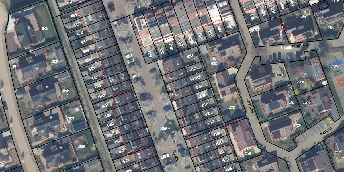Het perceel waarop Agaat 62 staat heeft een oppervlakte van 135 m². Dit is een middelgroot perceel. De perceeloppervlakte wordt geregistreerd door het Kadaster. Gedetailleerde informatie over de maten van dit perceel kunt u vinden in het rapport Kadastrale kaart met maatvoering van Agaat 62.